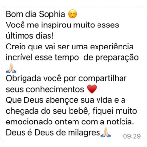 Essa experiência me trouxe ainda mais certeza de que a preparação do corpo antes da concepção faz toda a diferença. Mais do que nunca, senti que estava cumprindo meu propósito.